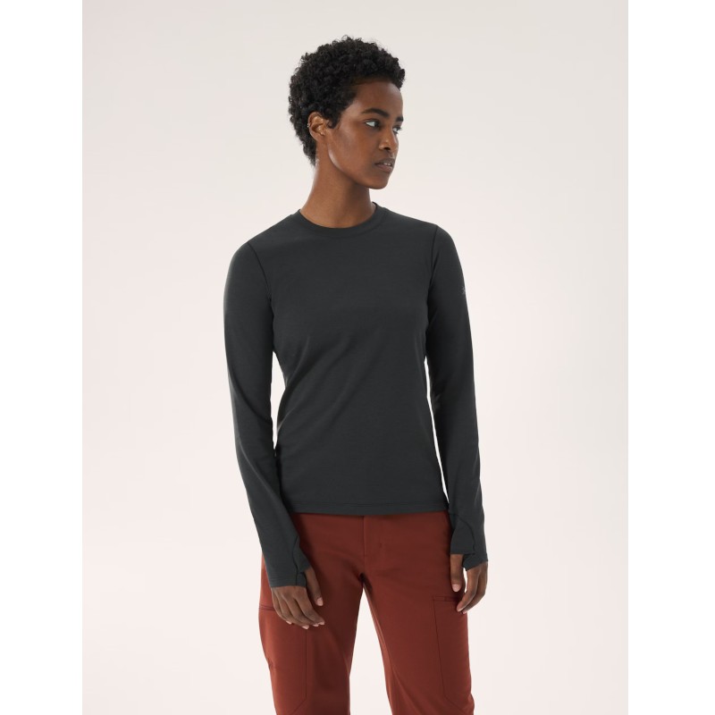 Arcteryx Taema Thermal Crew LS black heather - Longsleeves Frauen