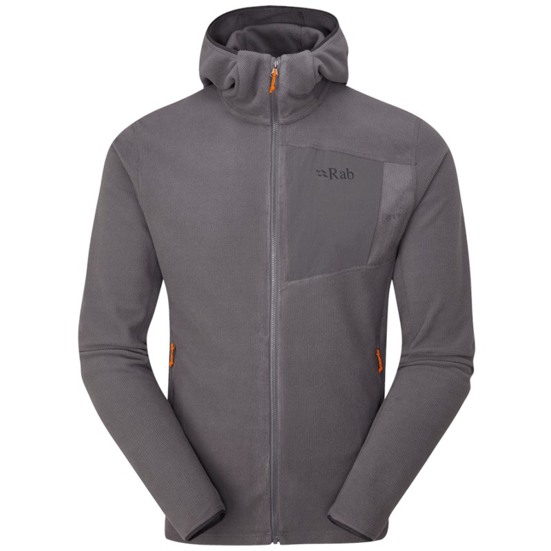 Der Rab Tecton Hoody ist ein leichter Fleece-Hoodie mit durchgehendem Rei?verschluss, konzipiert als vielseitige Midlayer f?r den ganzj?hrigen Einsatz in den Bergen. Das strukturierte Grid-Fleece aus 100 % recyceltem Material bietet ein sehr gutes W?rme-Gewichts-Verh?ltnis, transportiert Feuchtigkeit schnell ab und trocknet z?gig. Die k?rpernahe Kapuze und elastische ?rmelabschl?sse erm?glichen problemloses Layering unter einer Shell oder Isolationsjacke.