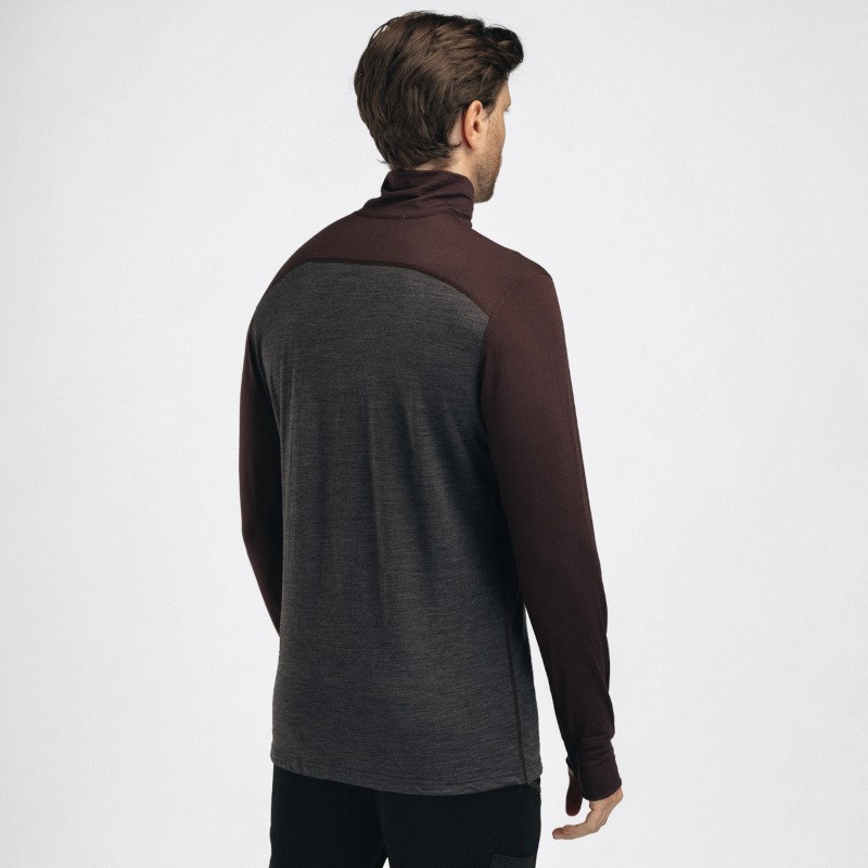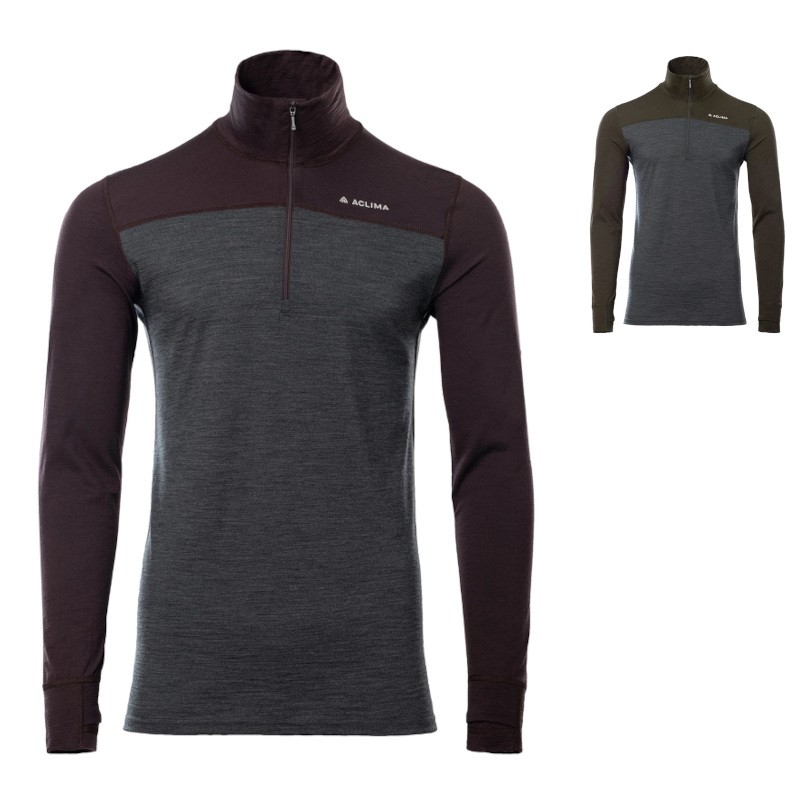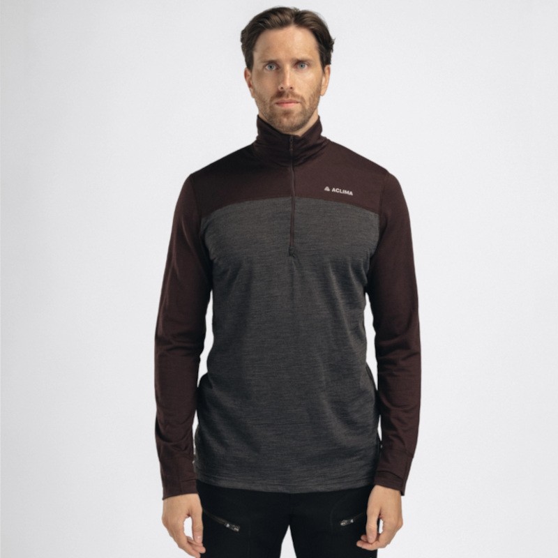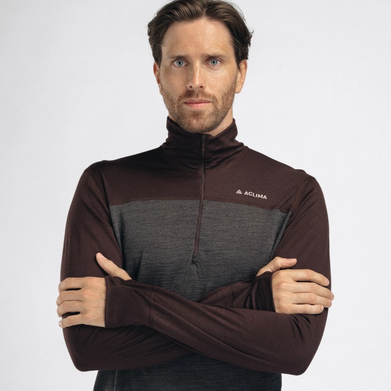Aclima LightWool 180 Polo Zip chocolate plum / marengo M