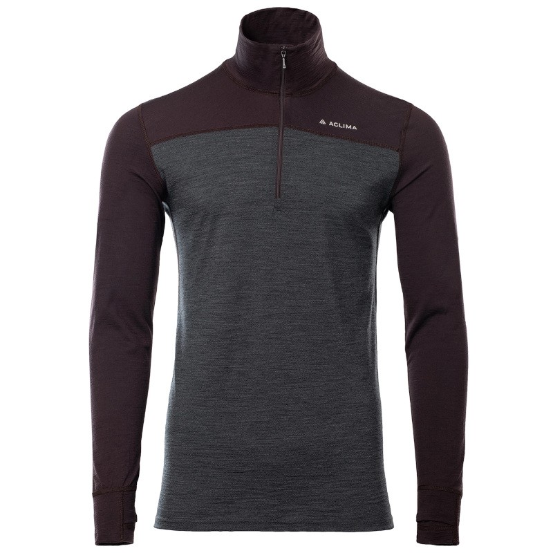 Aclima LightWool 180 Polo Zip chocolate plum / marengo L
