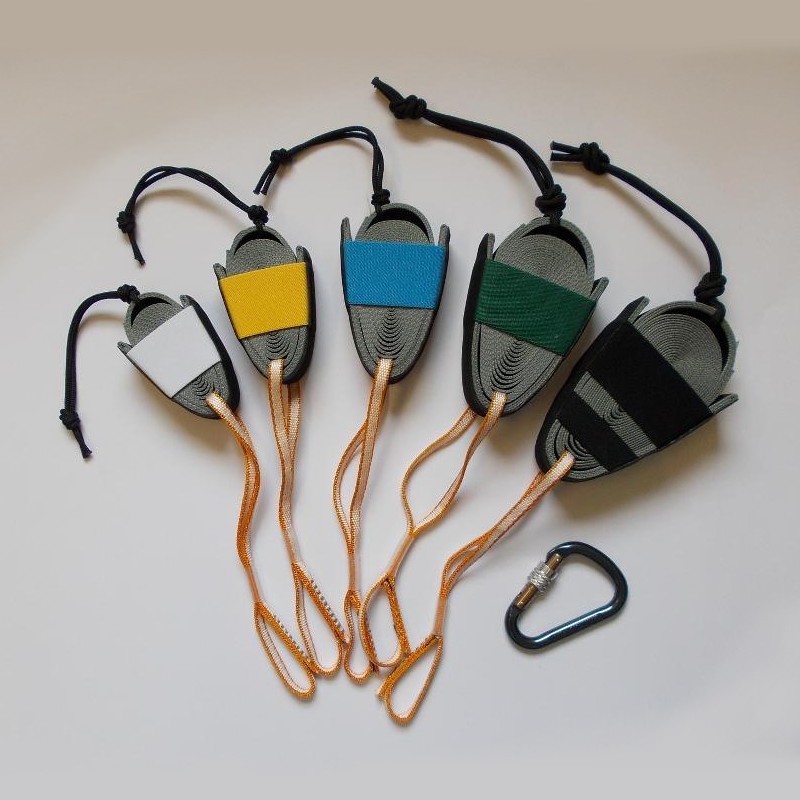 Jeder Keil ist mit einer zusammengen?hten Schlaufe ausgestattet, die die Bewegung des Seils mit dem Karabiner abgrenzt. Am oberen Teil befindet sich eine Hilfsschlaufe, die zum Ausziehen des Keils aus dem Geh?use dient, wodurch eine einfache Lockerung der Verriegelungsstellung gew?hrleistet wird.