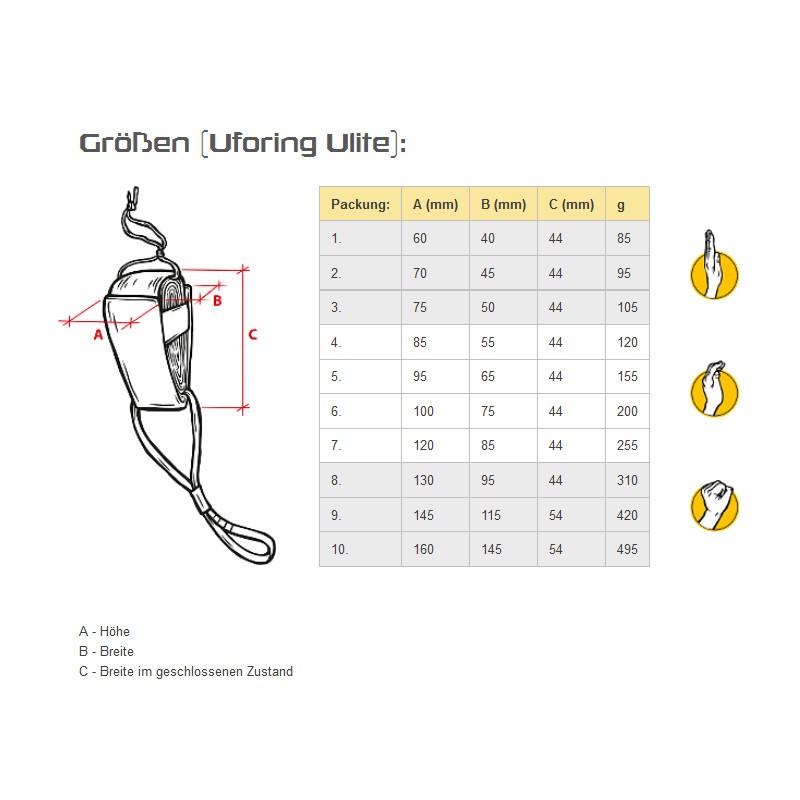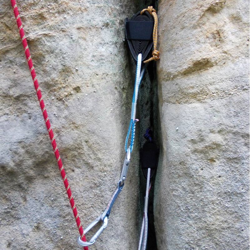 Der Uforing Klemmkeil funktioniert durch Einziehen des Textilkeils in das Gummigeh?use und die daraus folgende Ausdehnung. Der ?u?ere Textilteil ist mit einer Gummischicht versehen, die sowohl den Fels als auch den Keil selbst vor Besch?digungen sch?tzt. Zus?tzlich gew?hrt diese Gummischicht eine hohe Reibung, was f?r die richtige Funktion des Ger?tes und zum Auffangen im Fall eines Sturzes sehr wichtig ist.
