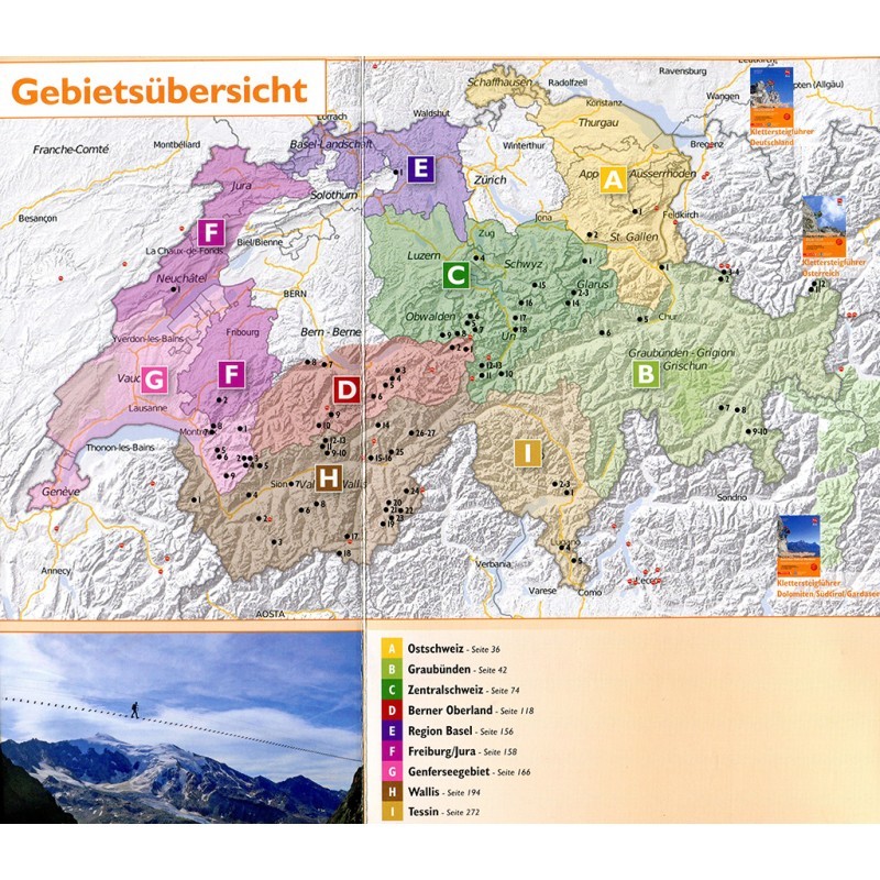 Selten findet man ein so abwechslungsreiches Spektrum an Eisenwegen. Manche Touren f?hren weit ?ber die 3000er-Grenze hinaus, andere wiederum sind tolle, ausgesetzte Abenteuer-Ferratas in Taln?he. Dem Klettersteiggeher wird in der Schweiz viel geboten! Der Klettersteigf?hrer Schweiz bringt neben den umfangreichen Tourenbeschreibungen die Schweizer Klettersteige detaillierte Toposkizzen, Karten, ?bersichtsfotos incl. Tourenapp. Viele packende Aktionfotos wecken bereits beim Lesen die Vorfreude auf den bevorstehenden Nervenkitzel. Die ?bersichtbilder, auf denen die Routen genau dargestellt werden, runden die Tourenbeschreibungen ab.